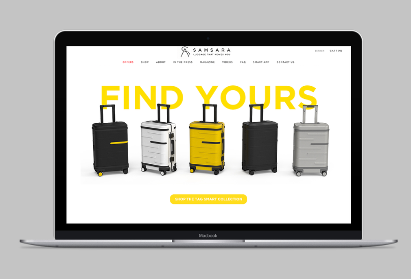Samsara is a travel brand that makes smart luggage. So smart that they partnered with Apple technology as the first luggage brand to incorporate the Apple AirTag in their bags. To spread the word and launch their new line, they asked us to create a disruptive digital campaign that told digital nomads everywhere all about it. So we developed a visual world combining the warmth and wanderlust of travel juxtaposed with the tech-forward nature of the product. A suitcase built for people who want to work and play from anywhere. And to tie it into Apple’s Air Tag tech, we use something almost everyone with an iPhone would recognize, the “Find my _____” command they use with their Find My app.